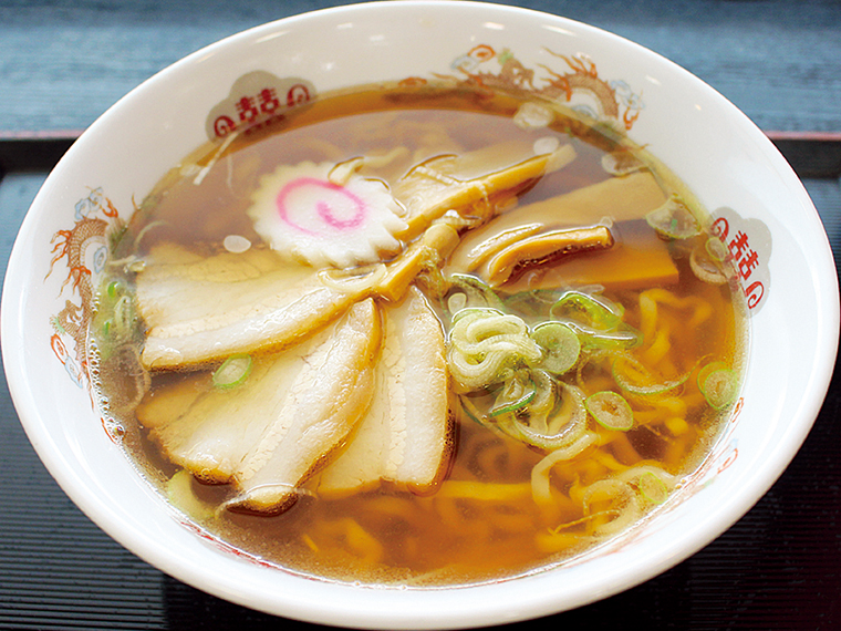 レストラン「ふるさと亭」では、王道の「醤油ラーメン」を味わえる。会津地鶏を丸ごと1羽使ってだしを取ったスープはコク深い。麓山高原豚の柔らかなチャーシューも絶品。