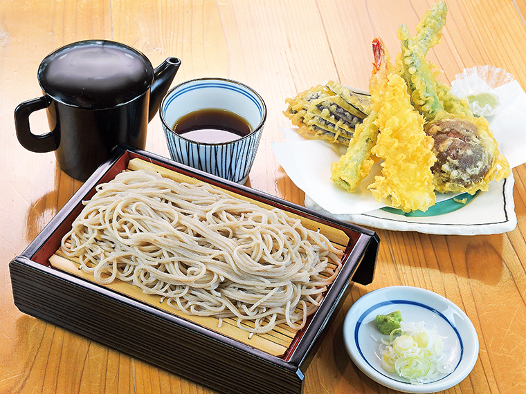 『道の駅 にしあいづ よりっせ』館内にある「食事処 いち膳」の必食メニューは「天ざるそば」。西会津町内でも名人と名高い打ち手から毎朝届く十割そばは、のど越し良く風味豊か。