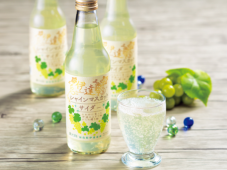 伊達市で約40年、広大な敷地で20種類ほどのブドウを栽培している『酒井ぶどう園』。今回新たに、シャインマスカットの果汁を使った「シャインマスカットサイダー」を販売。
