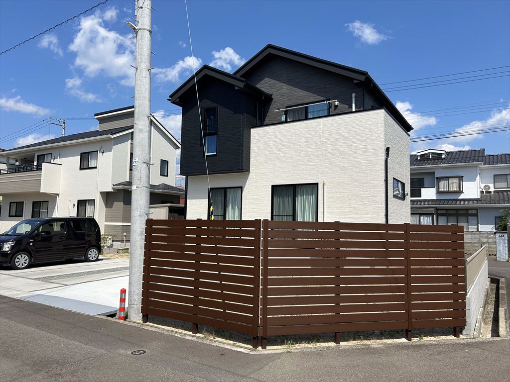 目隠しフェンスはディーズガーデンのベータウッドフェンスにしています。ディープブラウンのフェンスは外観にメリハリを与えました。