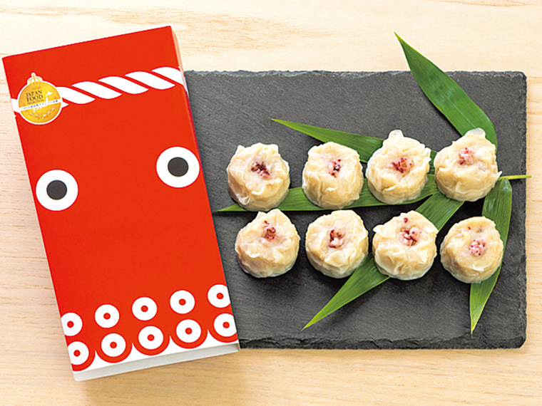写真は、「浜福のタコシウマイ」(1箱8個入り・1,242円)。蒸す・焼く・揚げる・レンジで加熱するなど自在に調理できて、食卓や弁当、酒肴にも重宝する。素材のタコを主役に、過度な調味に頼らないやさしい味わいが魅力。