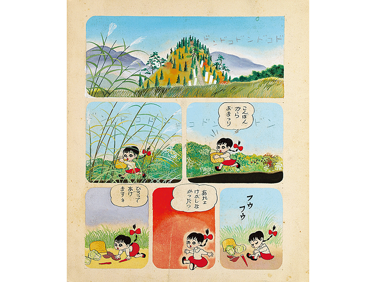 「横山孝雄原画展」では「きのこ裁判」をはじめ、赤塚不二夫のアシスタント時代のトキワ荘からフジオ・プロ時代までの作品、北海道でアイヌ文化を伝える絵本の原画などを展示。会期中アンケー トに答えた方には、記念パンフレットリーフをプレゼント(数量限定)