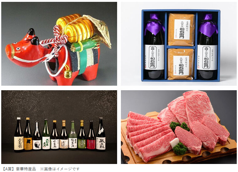 A賞は、各市のラーメン店と温泉施設のポイントを6つ集めると応募できる。抽選で6名様に米沢牛が食べられる商品券や喜多方の地酒詰め合わせ、会津の伝統工芸品・食品が当たる。