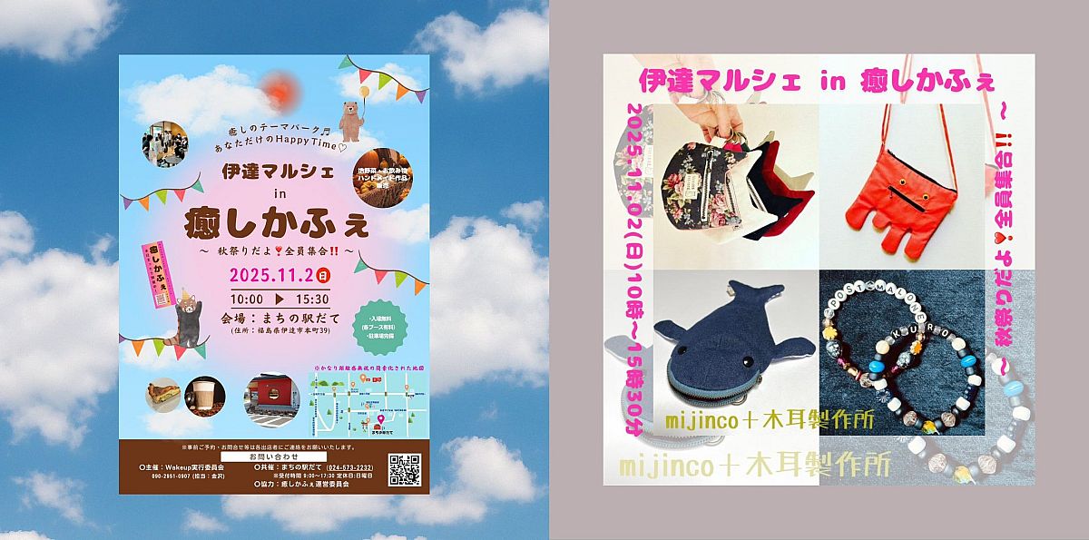 11月2日、🍑伊達マルシェin癒しかふぇ~秋祭りだよ❣️全員集合‼️~開催【まちの駅だて】