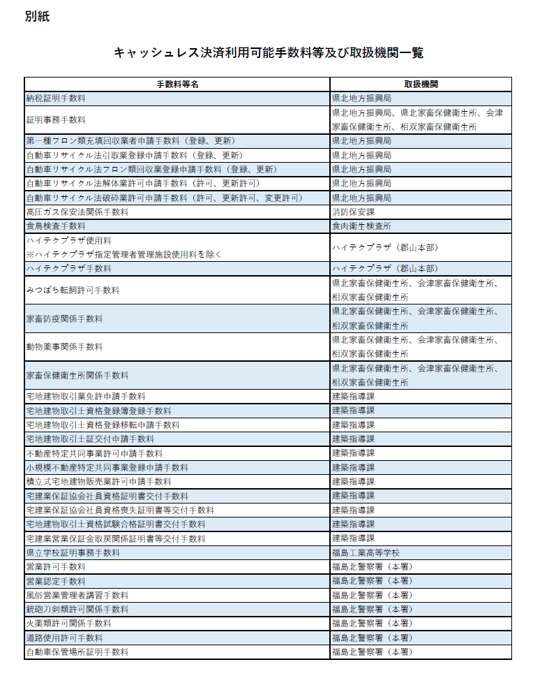 10月14日(火)から福島県の一部窓口でキャッシュレス決済が利用可能になります。