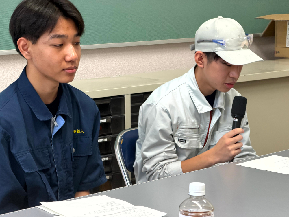 木材加工部門に出場した福島工業高校の菅野鋭人さん、電気工事部門に出場した中川昊之介さんの二人です。