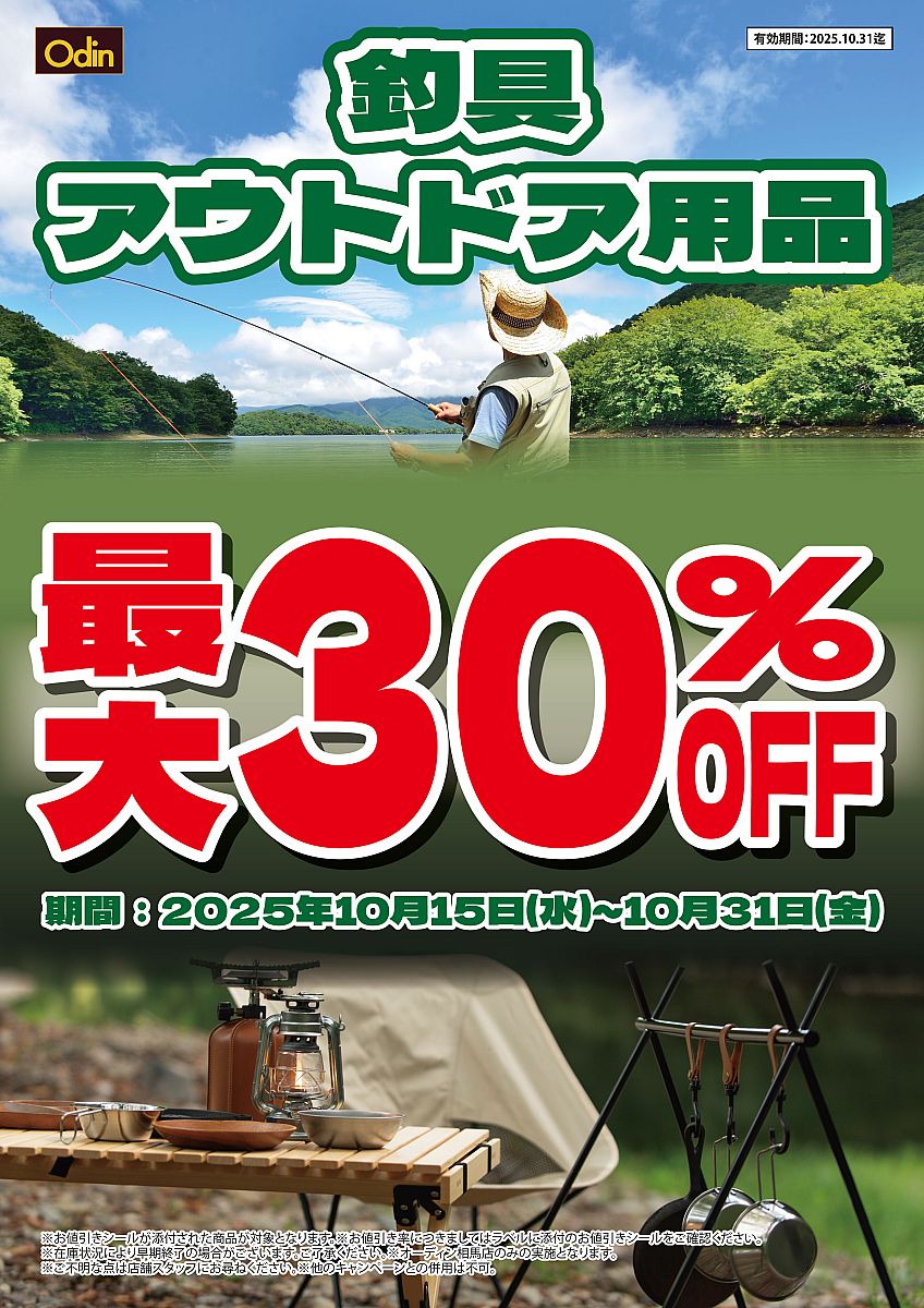 - 【オーディン相馬店】釣具・アウトドア用品 最大30%OFF(東都クリエート株式会社)- 2025.10.16(木) 14:27
