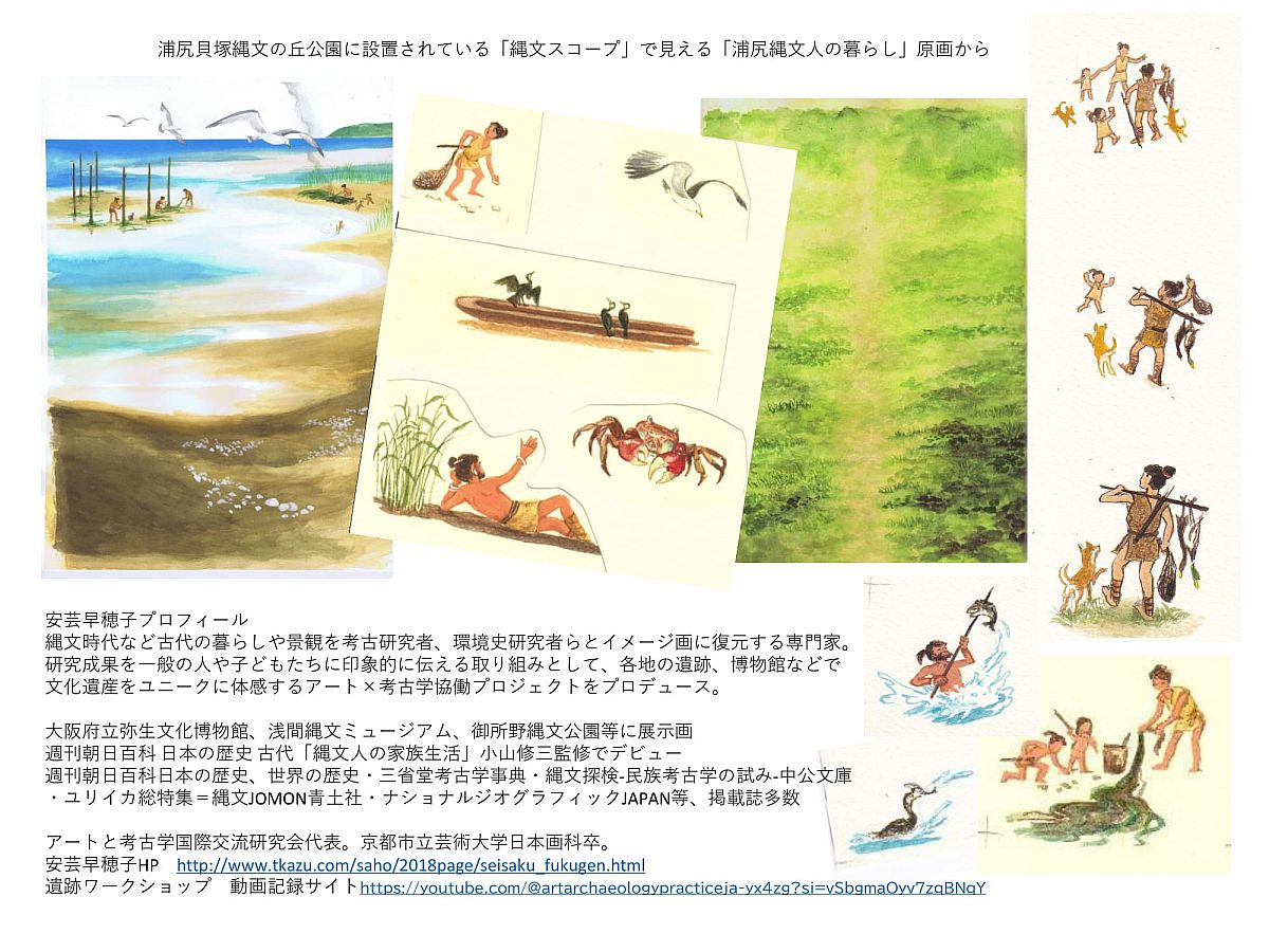 浦尻貝塚縄文の丘公園に復元画などを描かれた安芸早穂子さんの原画展です。