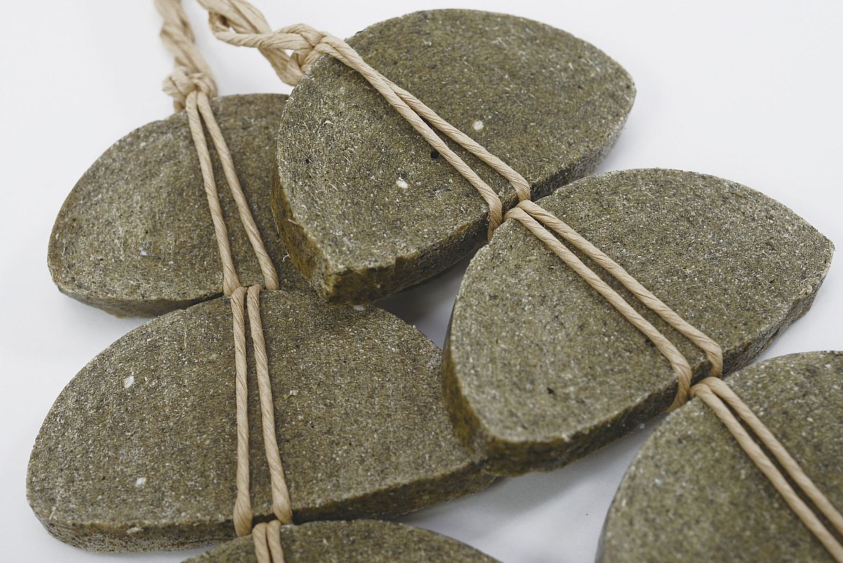 Like daikons, freeze-dried mochi are made by exposing them to the cold wind and slowly drying them, and they are typically prepared at the beginning of the year. “Shimi-mochi” have long been eaten throughout Fukushima Prefecture but are particularly famous in the Aizu region and the Abukuma Highlands. Glutinous or non-glutinous rice is steamed (sometimes with the addition of mugwort or greater burdock leaves) to create large, elongated mochi. After a few days, the slightly hardened mochi are cut into pieces, braided into strings, and hung outdoors to dry.