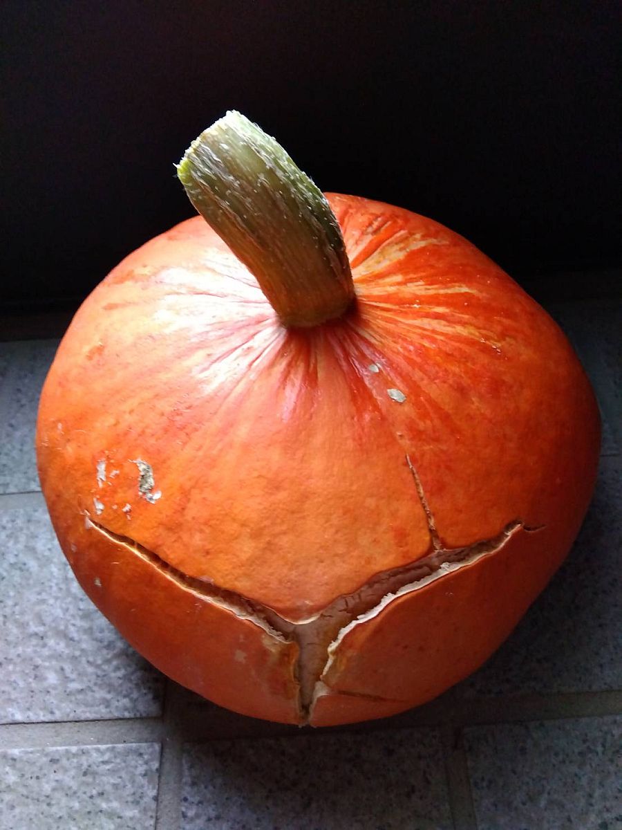 かぼちゃが割れることあるんだって、びっくりして送ってきた写真です
