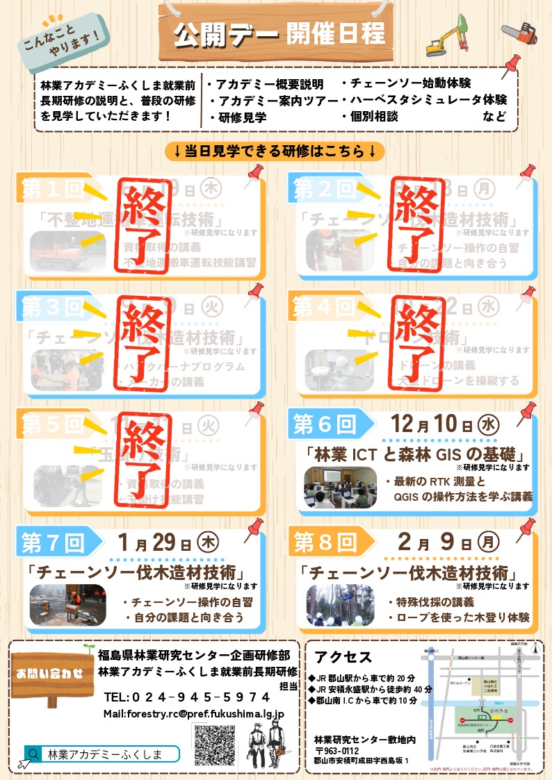 12月の公開デーは「林業ICTと森林GISの基礎」(研修見学)です【林業アカデミーふくしま】