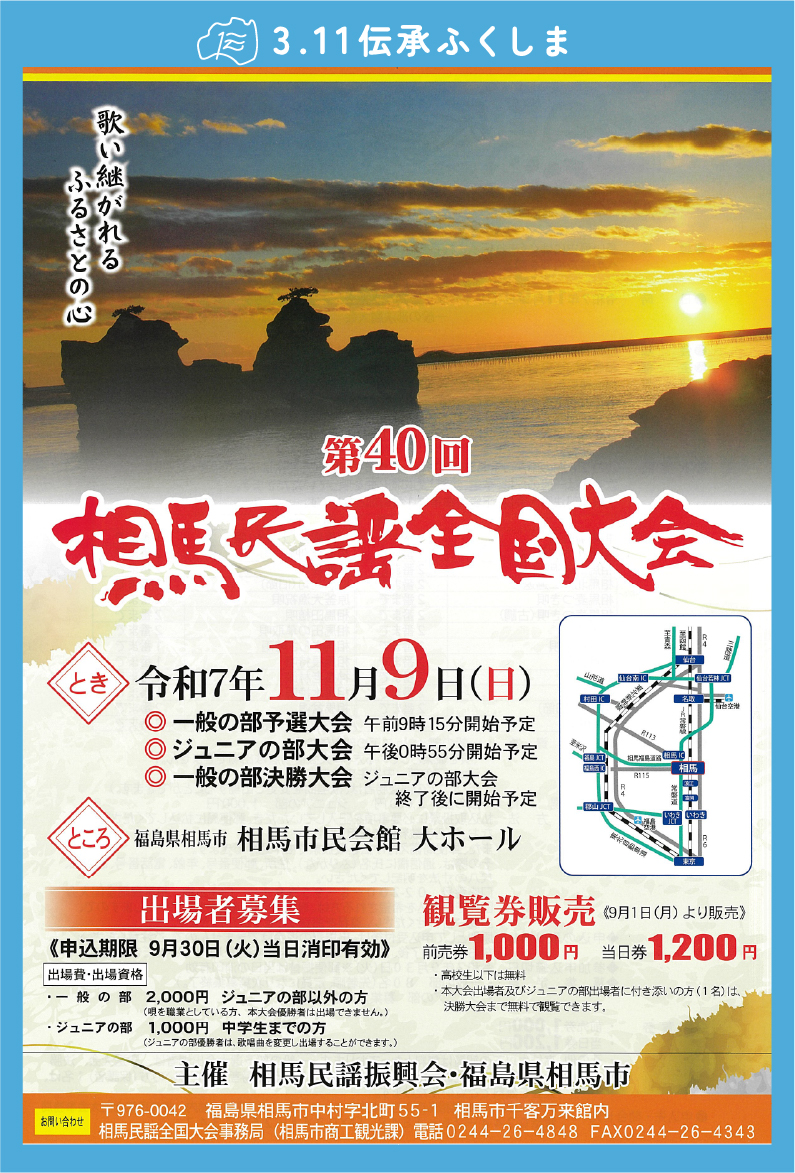 - 【イベント情報_11月】相馬市/のど自慢集まれ!第40回相馬民謡全国大会を開催します(3.11伝承ふくしま事務局)- 2025.11.06(木) 13:51