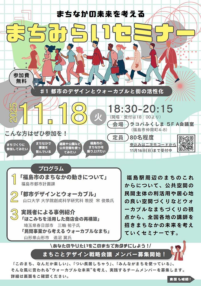 - まちなかの未来を考える「まちみらいセミナー」11/18(火)開催!!(ラジオ福島)- 2025.11.06(木) 14:39