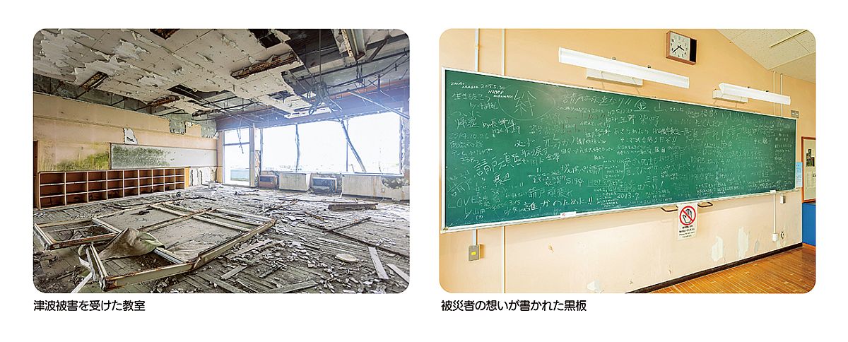 特に校舎1階は、東日本大震災による大地震・大津波の被害の様子を見ていただけます。
