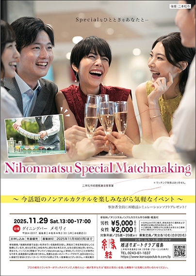 - 【参加男女大募集】二本松駅前でノンアルコールカクテルを楽しめる婚活イベント開催!(エス・シー・シー)- 2025.11.16(日) 09:13