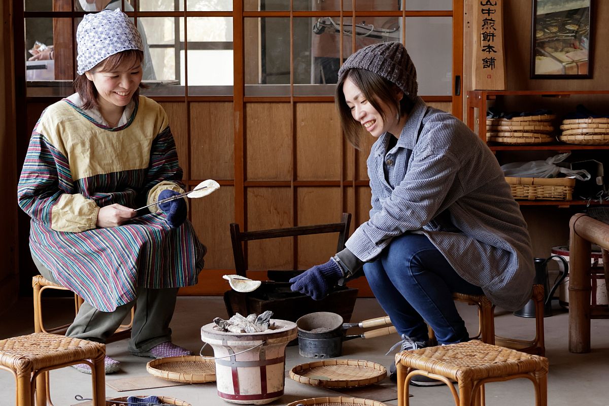 Baking Traditional Rice Crackers / せんべい焼き体験