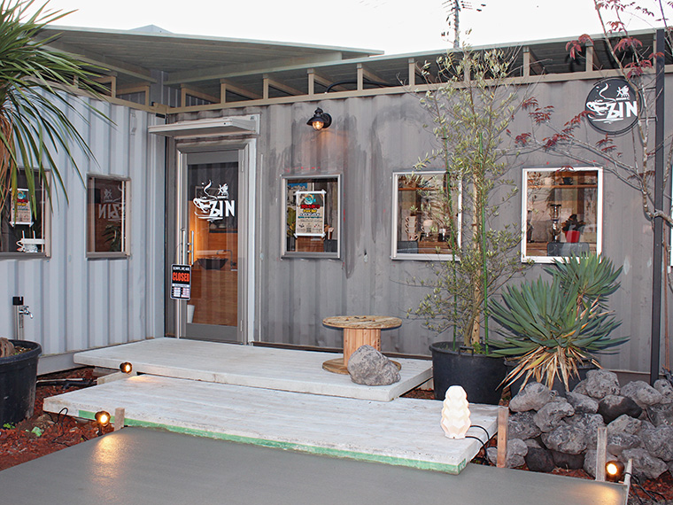 コンテナ2台を再利用した個性的な外観。コーヒー片手に「グリーンフィール」内を散策するのもいい。