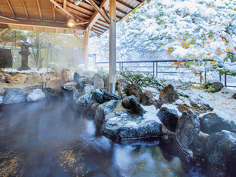 料理を味わった後は温泉でリフレッシュ。弱アルカリ性単純泉の湯は美肌の湯として評判