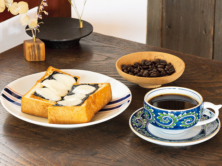 写真は酸味と苦みのバランスが絶妙な「今出川ブレンド」(580円)。人気のトースト「のりモッツァレラ」(550円)とともに。