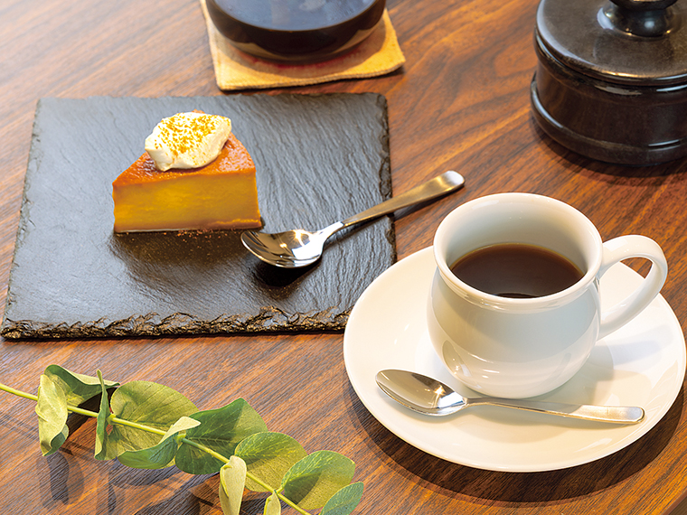 グアテマラなど常時約10種類の珈琲豆を揃える。スイーツは定番の他に「かぼちゃのプリン」(660円)などの季節限定品も。
