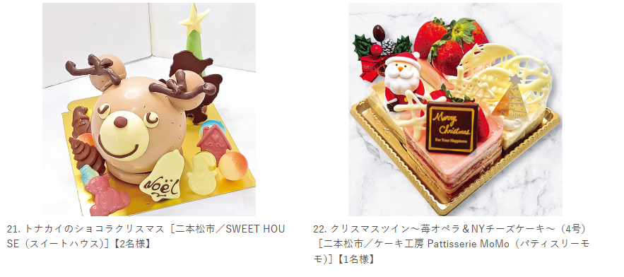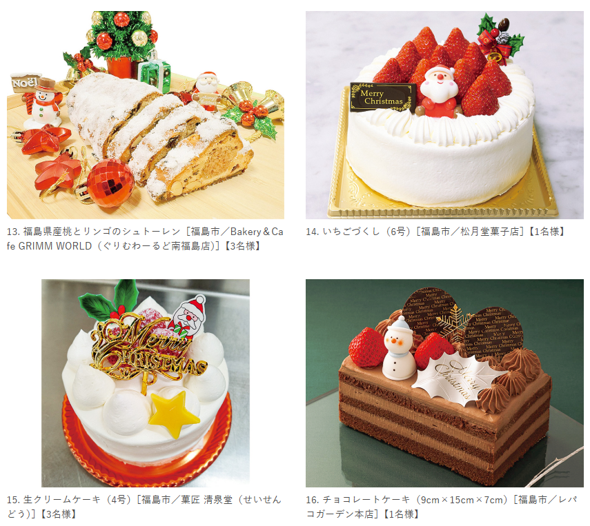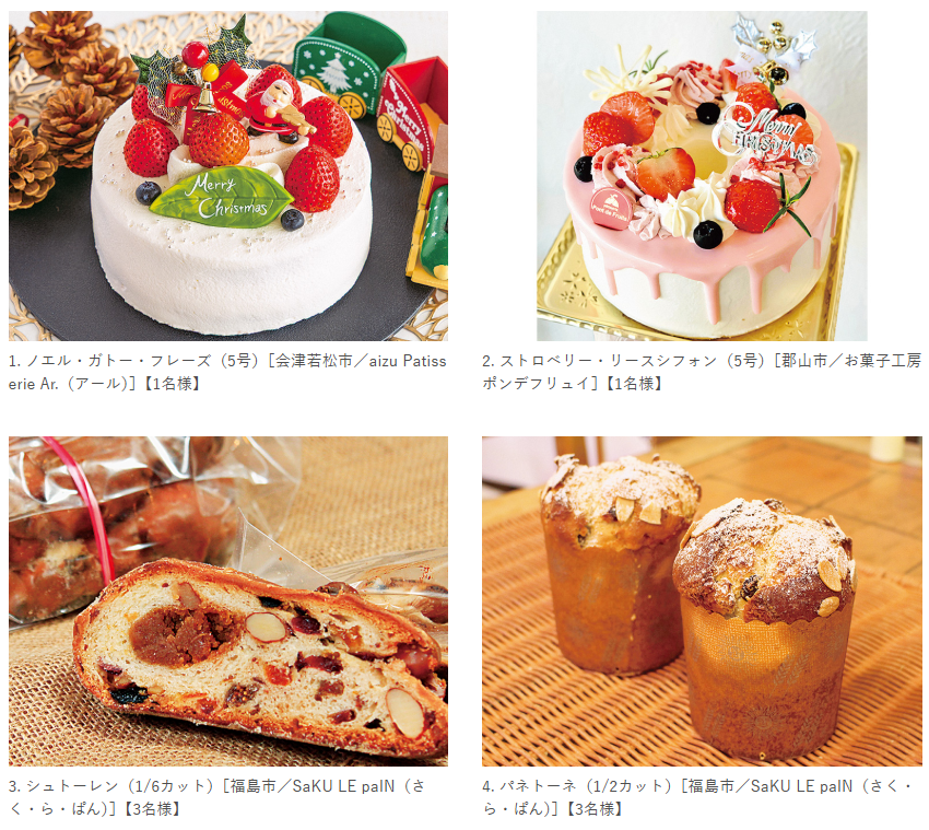 福島県のタウン情報誌「CJ Monmo」2025年12月号に掲載している、福島県内のパティスリーなど22軒の華やかなクリスマスケーキや焼菓子を、抽選で40名様にプレゼント! 気になる逸品を見つけてぜひ応募しましょう!