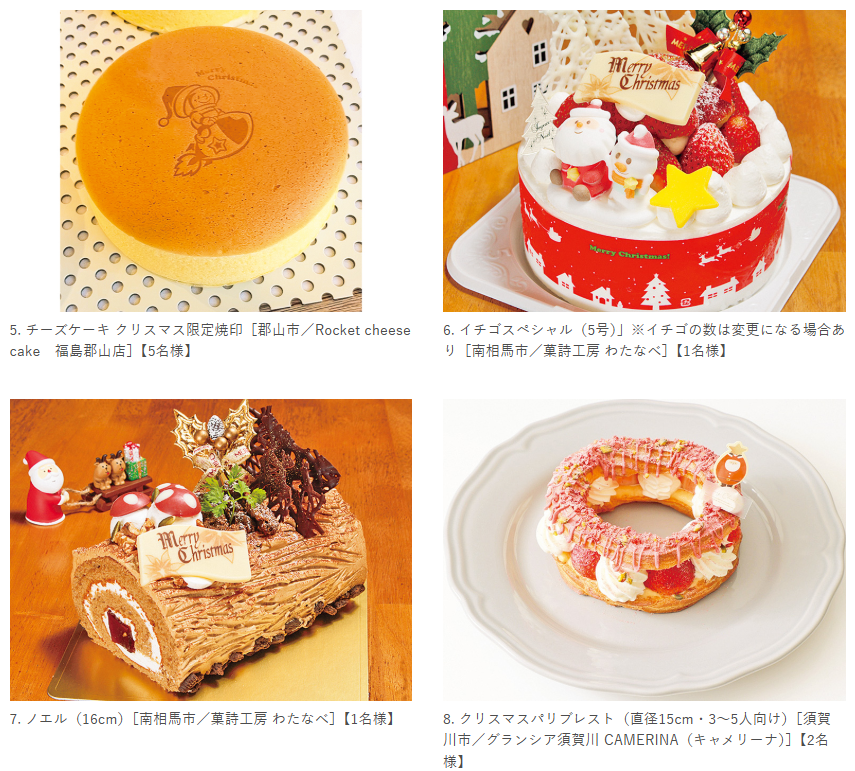 福島県のタウン情報誌「CJ Monmo」2025年12月号巻末の読者アンケートハガキに希望するケーキの番号を記入し、お送りください。読者アンケートはWebでも受付!