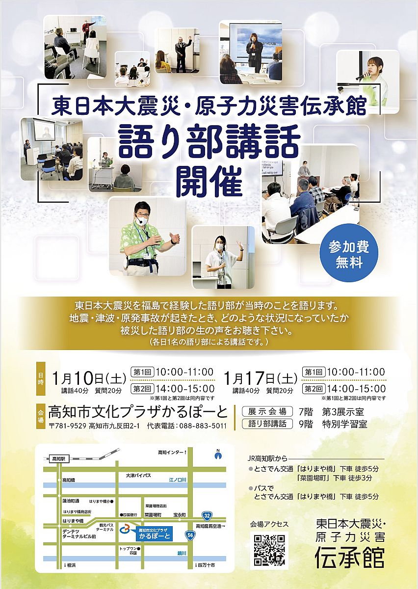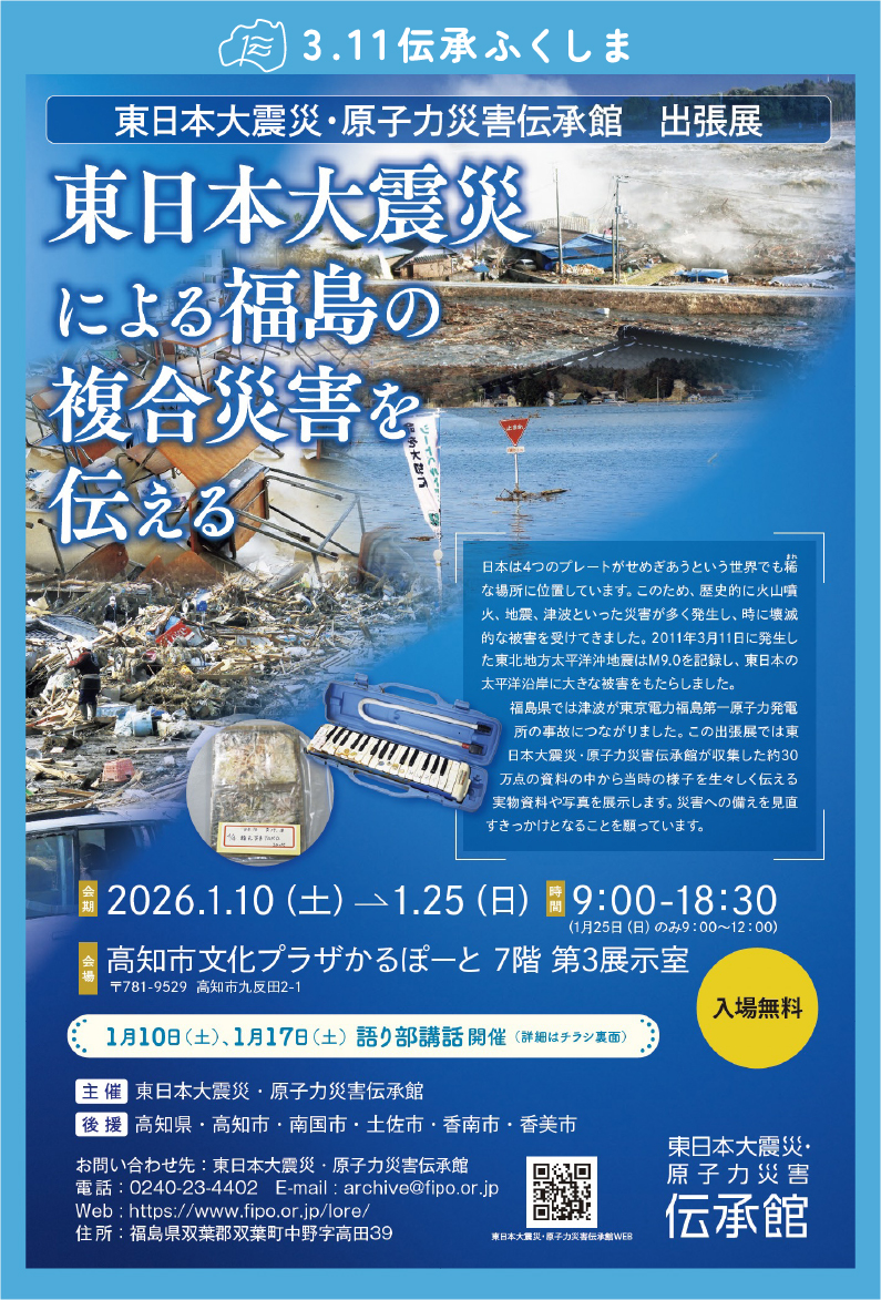 - 【イベント情報_1月】東日本大震災・原子力災害伝承館 出張展を高知県で開催します。(3.11伝承ふくしま事務局)- 2025.12.05(金) 19:55