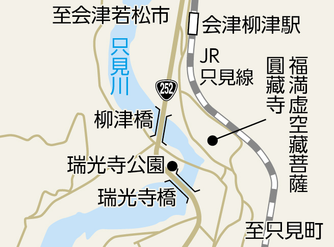 JR只見線会津柳津駅から徒歩約15分