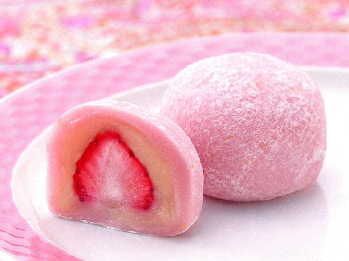 コシのある杵つき餅で、いちごを丸ごと白餡と一緒に包み込みました。