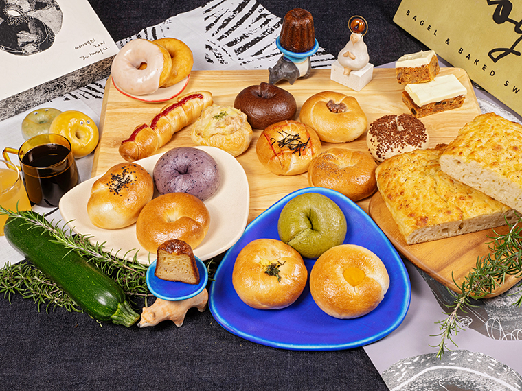 「プレーン」(230円)などの定番はもちろん、季節の食材を使った日替わりベーグルが10種類ほど並ぶ。「Monogelブレンドコーヒー」「レモネード」などのドリンクも販売。