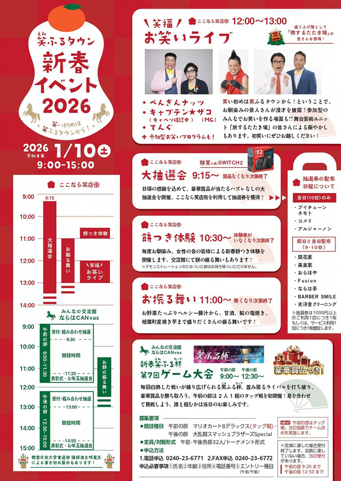 - 【イベント情報_1月】みんなの交流館ならはCANvas/『笑ふるタウン 新春イベント2026』を開催(3.11伝承ふくしま事務局)- 2025.12.27(土) 13:58