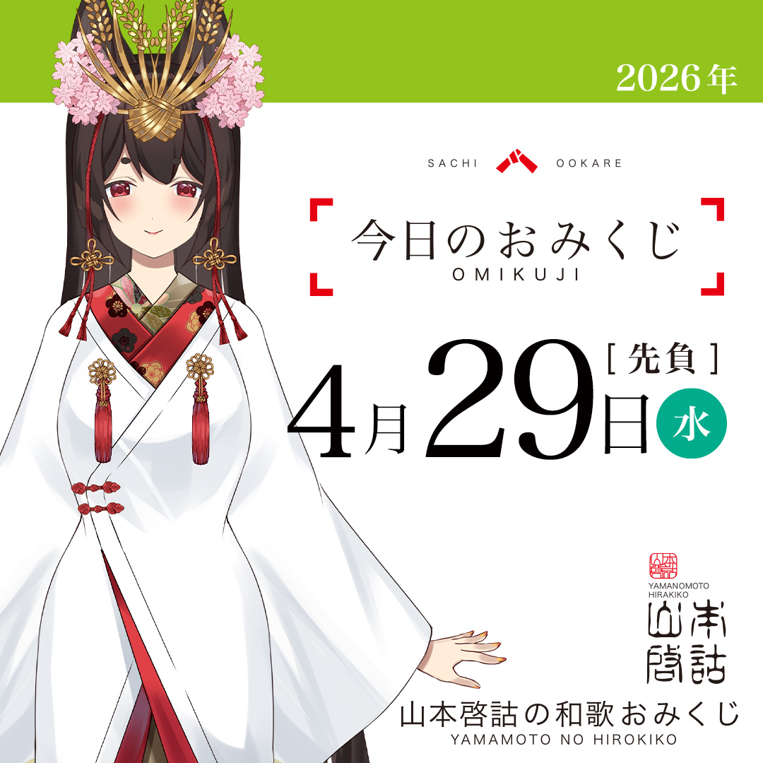 - [ 山本啓詁の和歌おみくじ ] 4月29日 水曜日(山本啓詁の和歌おみくじ)- 2026.04.29(水) 00:01