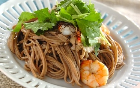 そばは袋の表示より1分短くゆでてザルに上げ、冷水にとって手早く洗い水気をきります。