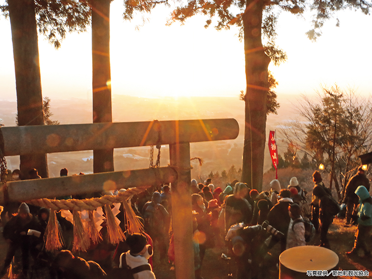 福島県と宮城県の県境にそびえ立つ標高430mの「鹿狼山(かろうさん)」は“日本一早い山開き”のスポット。毎年元旦に山開き式が執り行われ、山頂から初日の出を拝もうと福島県内外から多くの登山客が訪れる。