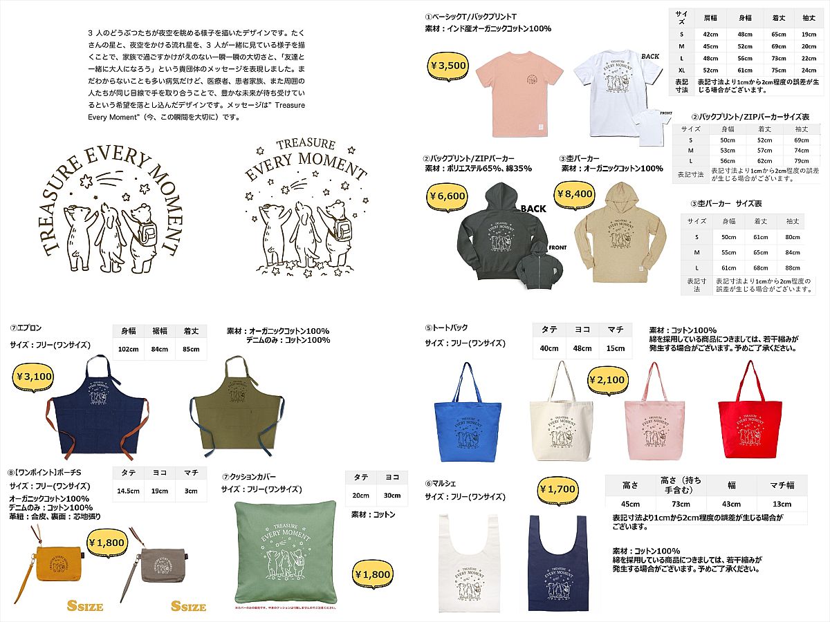 期間中は「Treasure Every Moment(今、この瞬間を大切に)」というメッセージが込められたオリジナルデザインのアイテムを販売します。夜空を眺める3匹の動物たちが描かれたデザインを通して、ローハッド症候群の周知活動をぜひ応援してください。