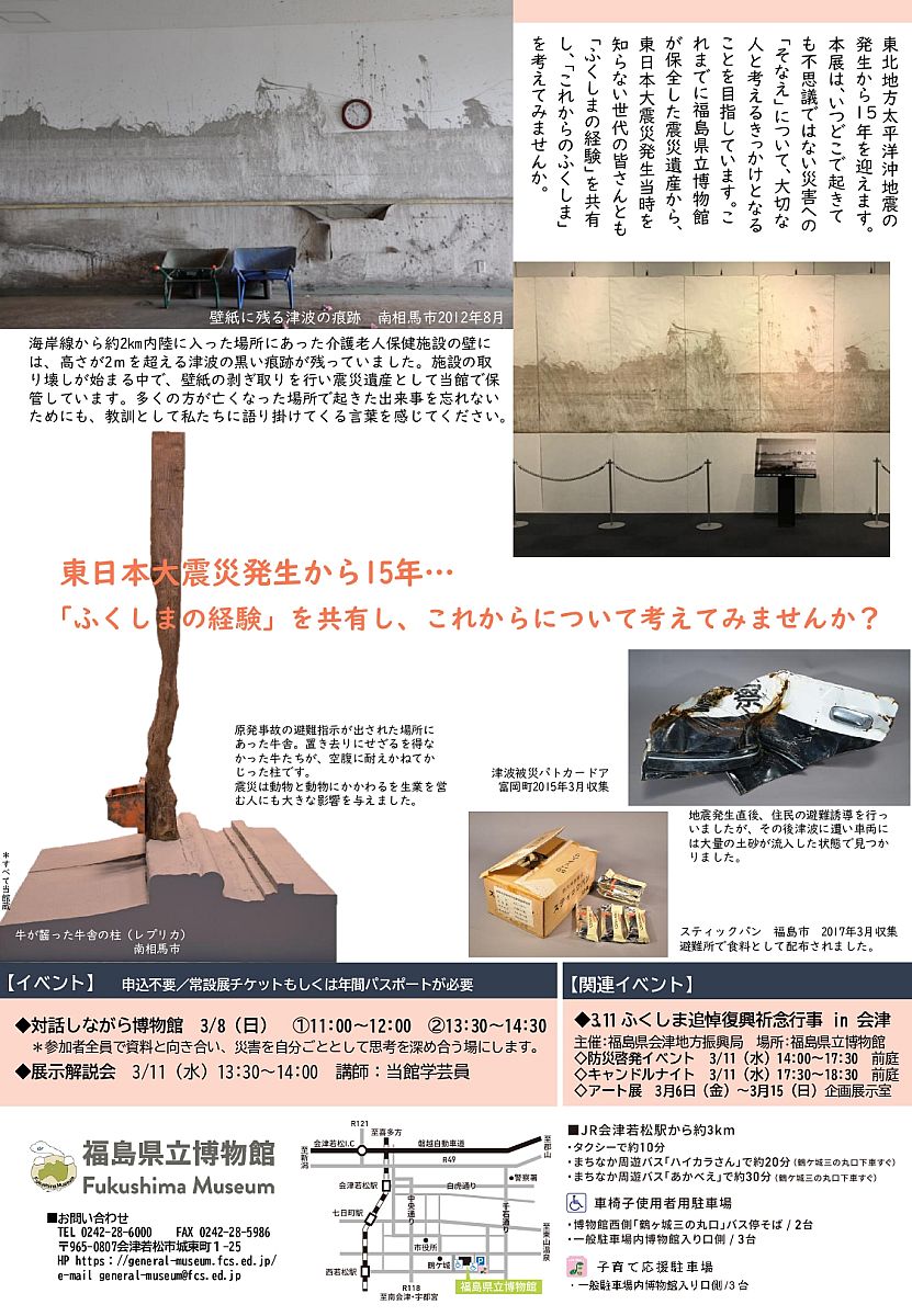 【福島県立博物館】震災から15年。特集展「震災遺産を考える」2/13から開催