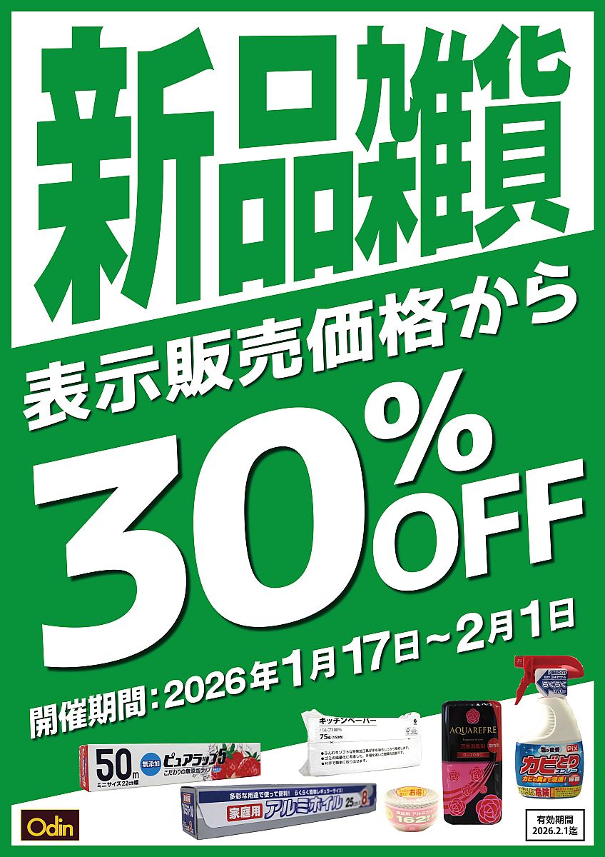 - 新品雑貨30%OFFセール(東都クリエート株式会社)- 2026.01.23(金) 11:05