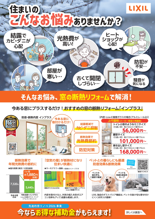 - 寒さ・結露対策は今がチャンス!補助金を使った断熱&水まわりリフォーム(プレオ)- 2026.01.26(月) 15:32