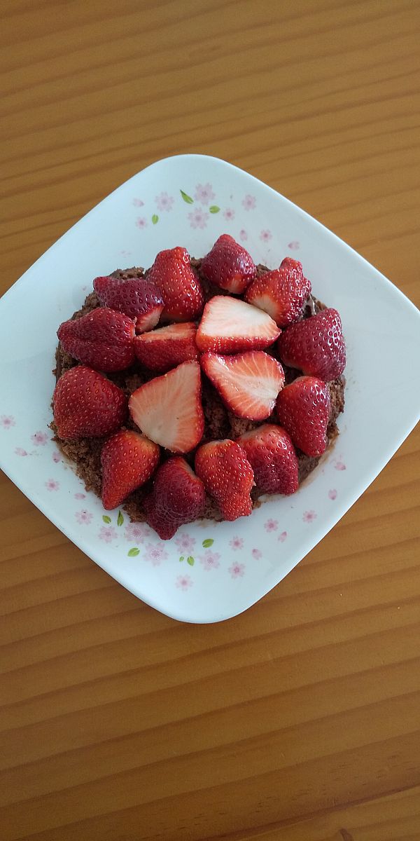 出来たてほやほやのチョコレートケーキの写真を送ります。(真っ赤で美味しそうな苺は福島県産のとちおとめです)」