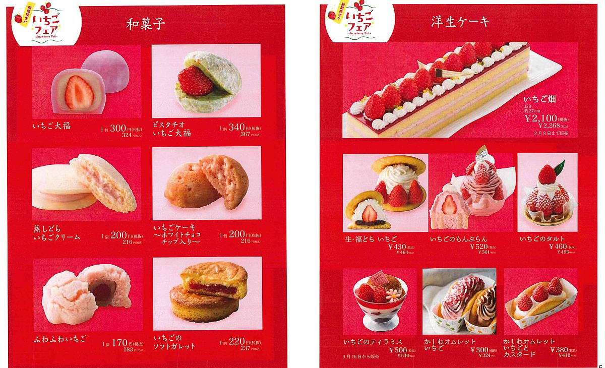柏屋では昨年好評だった「いちごフェア」を今年も開催(2月1日~3月31日)