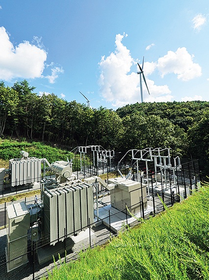 右下の写真は、東北・北海道唯一の重電メーカーであり、供給体制の強化に向け、持続可能な成長を支える人材育成に取り組む。カーボンニュートラル対応の「植物油入変圧器」は国内トップシェア。その大半を占める「菜種油変圧器」は、環境性能と安全性で高い評価を得ている。