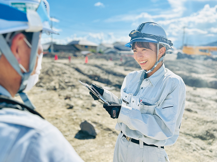 近年は女性が働きやすい現場環境が整い、女性現場監督も増えてきている。現場が完成していく達成感は仕事のやりがいにもつながる。