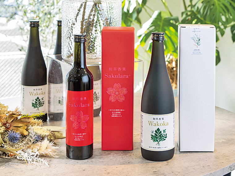 オリジナル発酵美容ドリンク2種。左から和草香果の「Sakulara+」(8,000円)と「Wakoka」(6,000円)