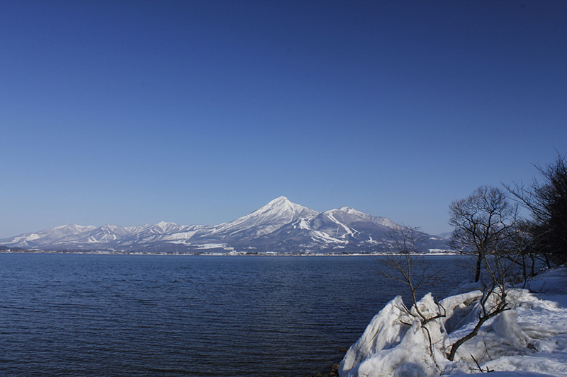 In winter, Lake Inawashiro reveals a mysterious natural phenomenon known as “Shibuki-gōri”, which translates to “splashed ice”. Trees along the shore are coated in white ice, creating a quiet, otherworldly scene. It forms when strong winter winds spray lake water onto the trees, where it instantly freezes. This phenomenon can be seen at Tenjin Beach in Inawashiro Town and Hamaji Beach in Kōriyama City, best from early January to mid-February.