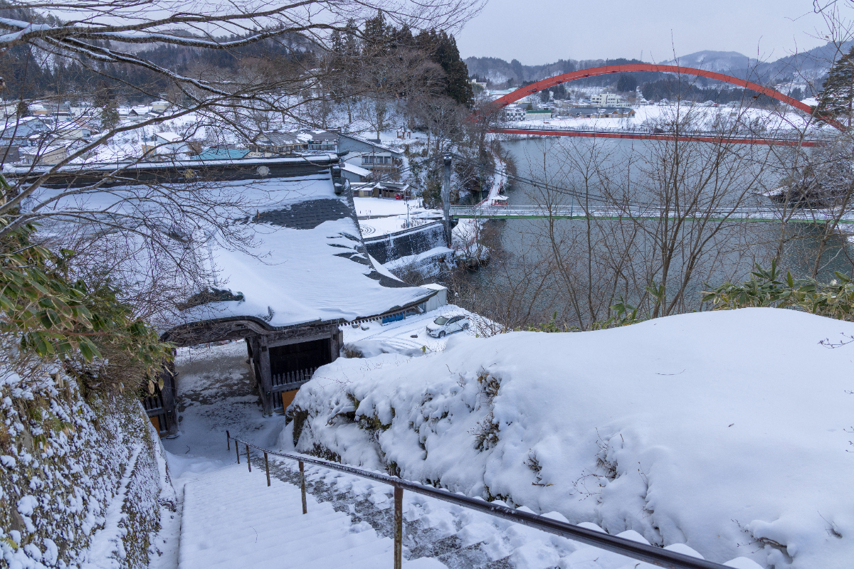 奥会津18 No.6 福満虚空藏菩薩圓藏寺の冬景色(柳津町) 白く染まる赤べこ伝説の里でほっこりと