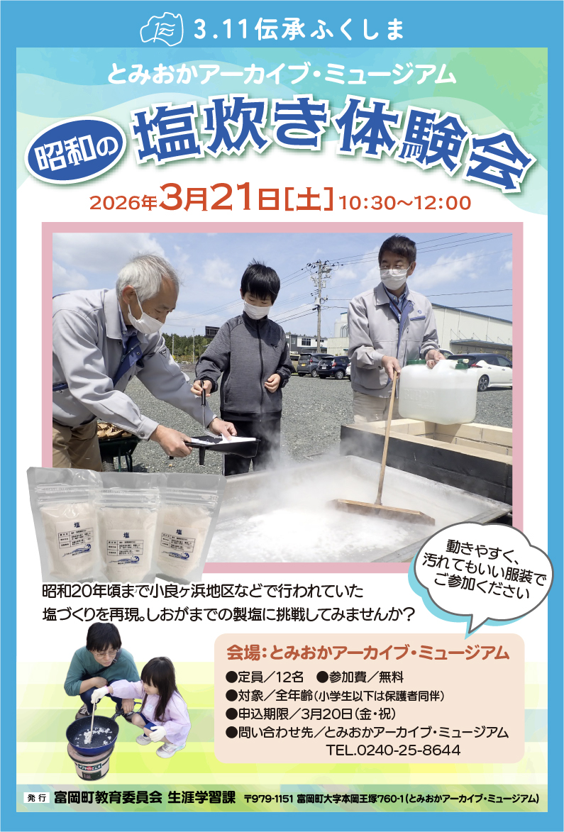 - 【イベント情報_3月】とみおかアーカイブ・ミュージアム/『昭和の塩炊き体験会』を開催します。(3.11伝承ふくしま事務局)- 2026.02.12(木) 17:31