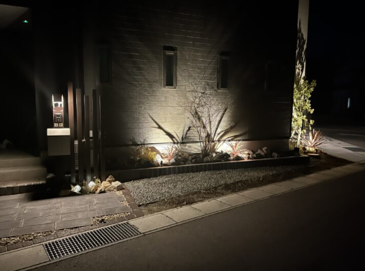 玄関アプローチを一新|植栽&ライトアップで安心・おしゃれな外構に