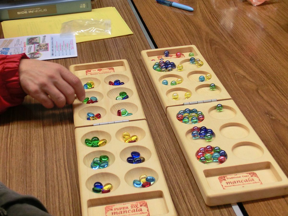 「マンカラ」は アフリカから中近東、東南アジアにかけて古くから遊ばれているボードゲームで