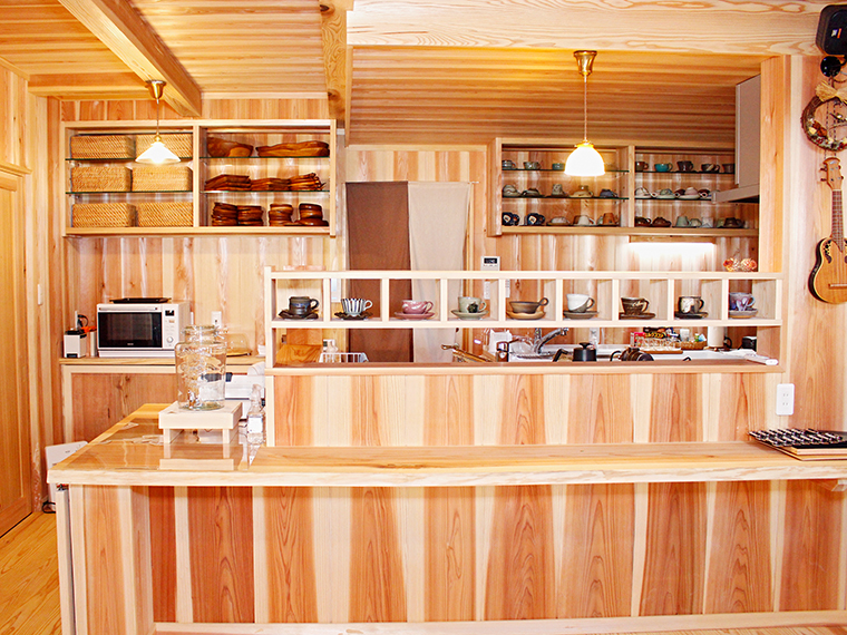 JR植田駅から徒歩5分の立地もうれしい。和風の外観と一枚板をぜいたくに使用した内装に癒やされる。