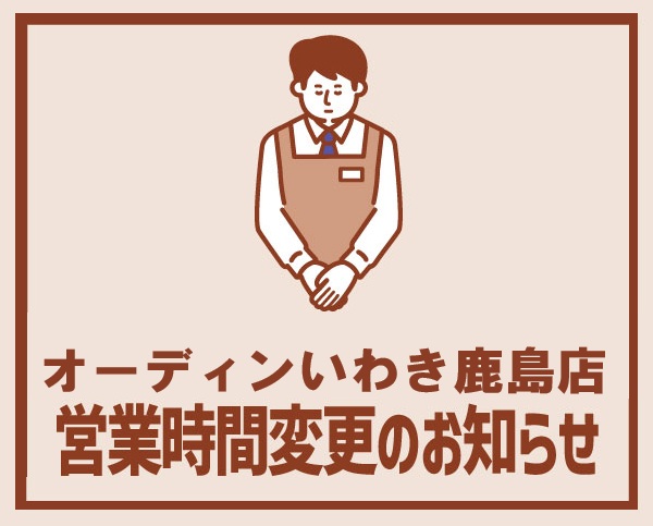 - オーディンいわき鹿島店<営業時間変更のお知らせ>(東都クリエート株式会社)- 2026.03.02(月) 14:07